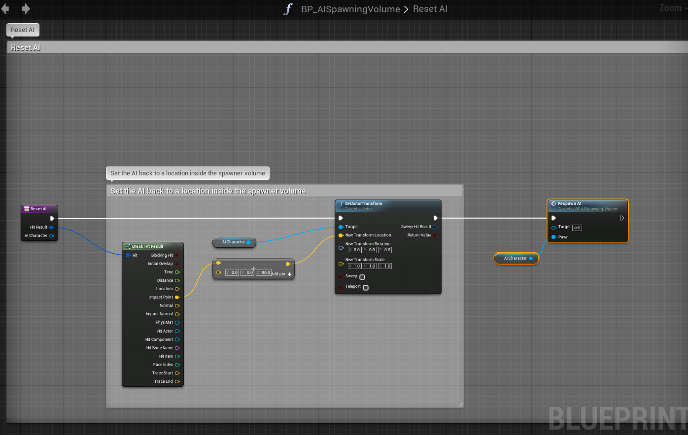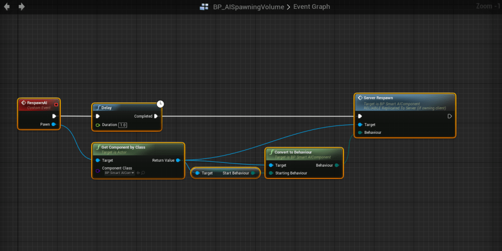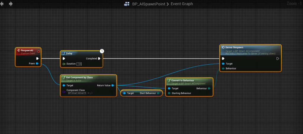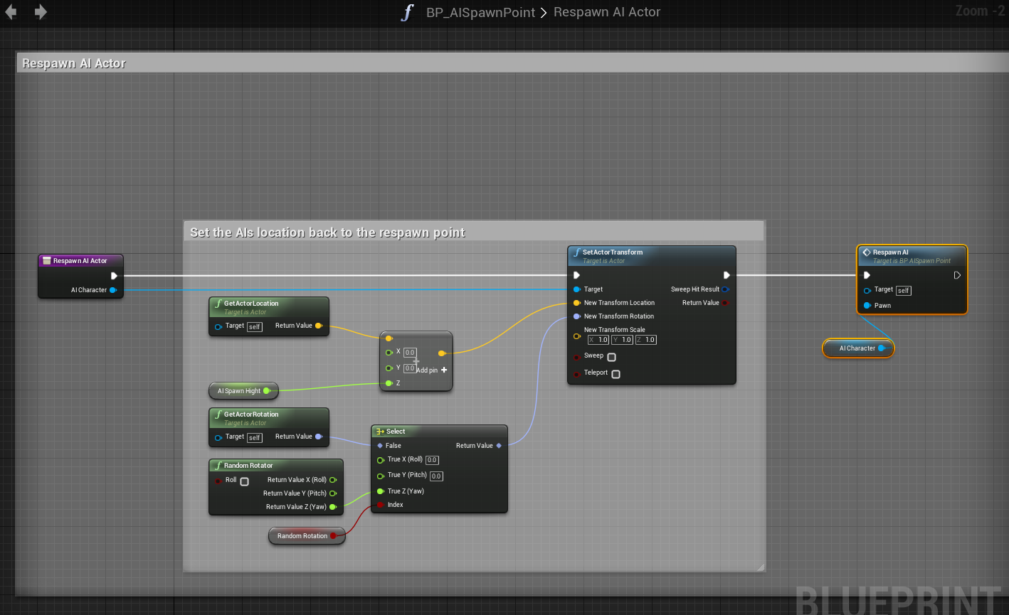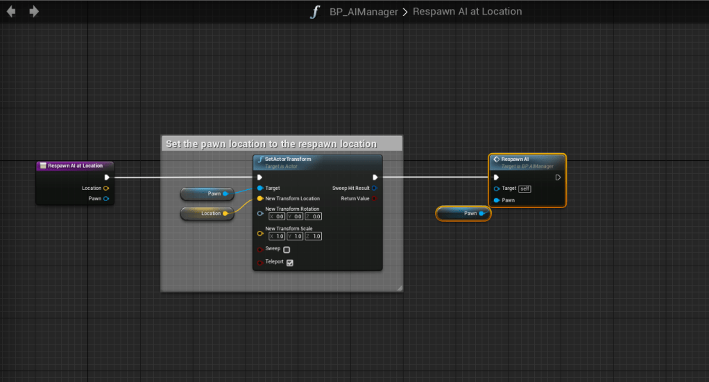 Next go to the Respawn AI At Location function in the BP_AIManager and copy the image below.