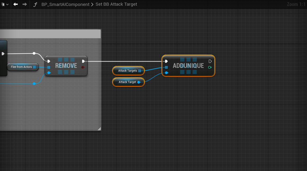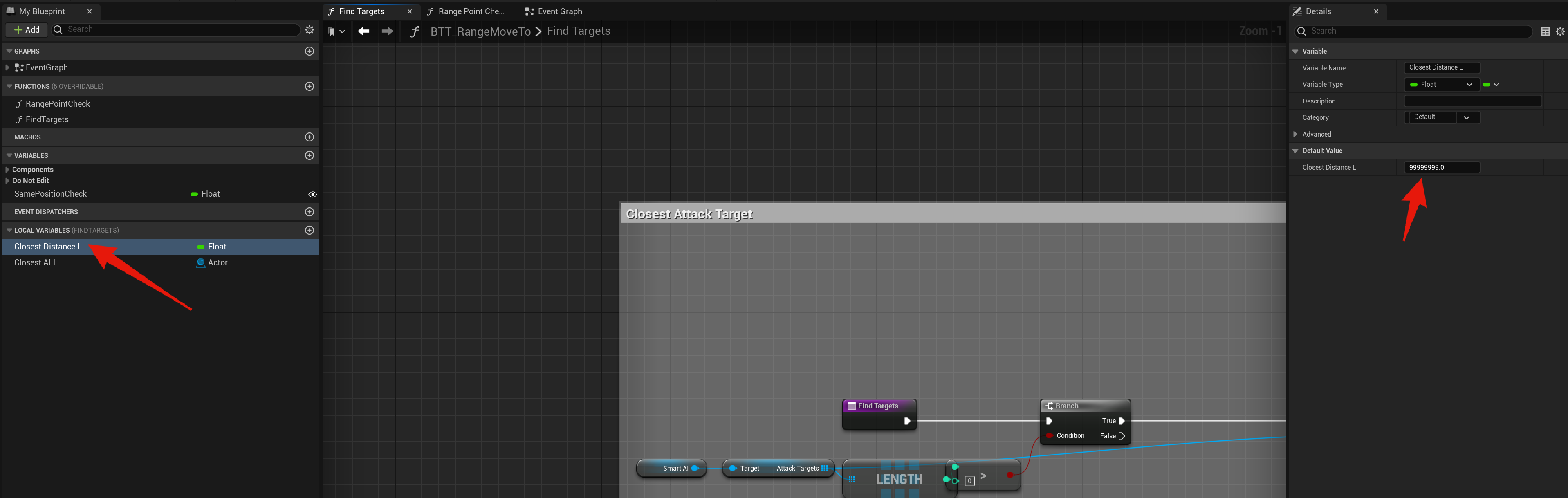 Smart AI – Fixed issue with AI not responding to attacks Add the highlighted nodes shown in the image below, location at the top of the image. Go to the location shown below and change the local variable value to the value shown in the image.