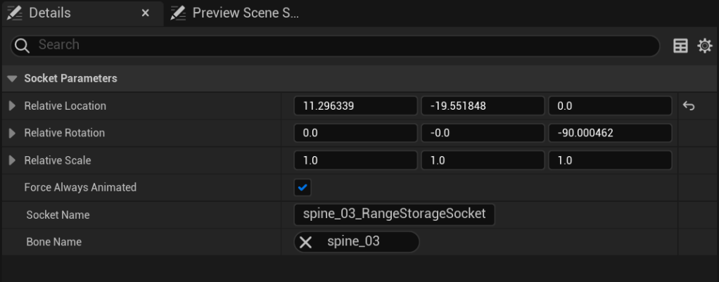 Then select the socket and copy the location and rotation settings from the image below, if you wish to have a different position you can set your own values.