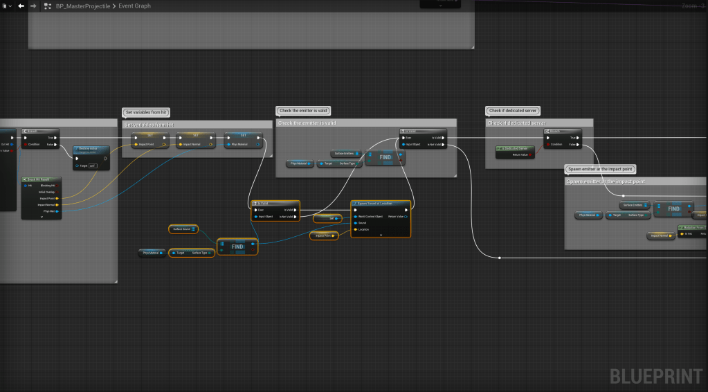 Smart AI – Fixed projectile impact sounds not playing for clients Add the highlighted nodes shown in the image below, location at the top of the image.