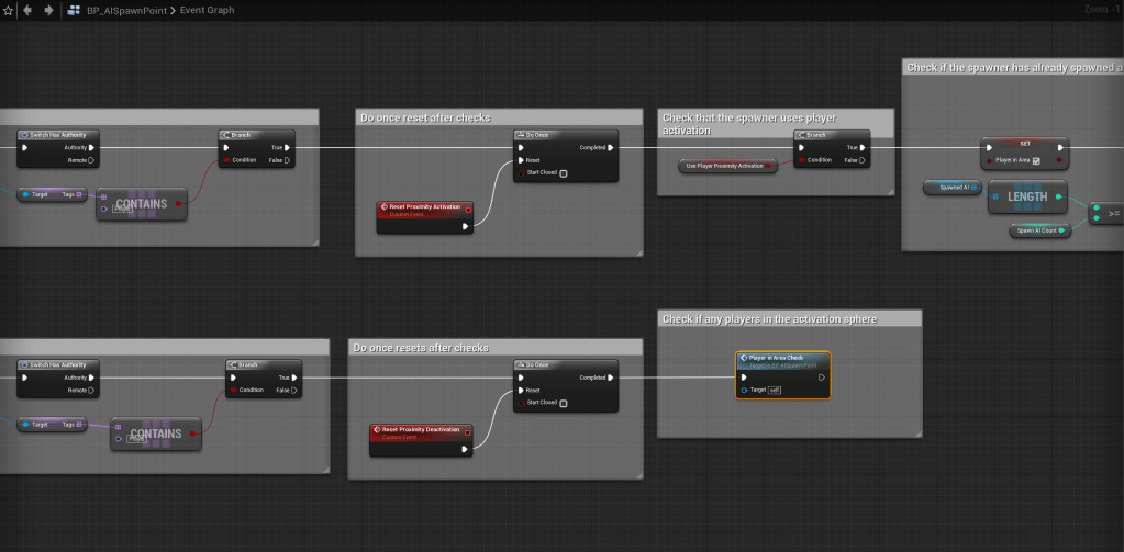 Go to the BP_AISpawnPoint and create a new function called PlayerInAreaCheck and copy the images below.