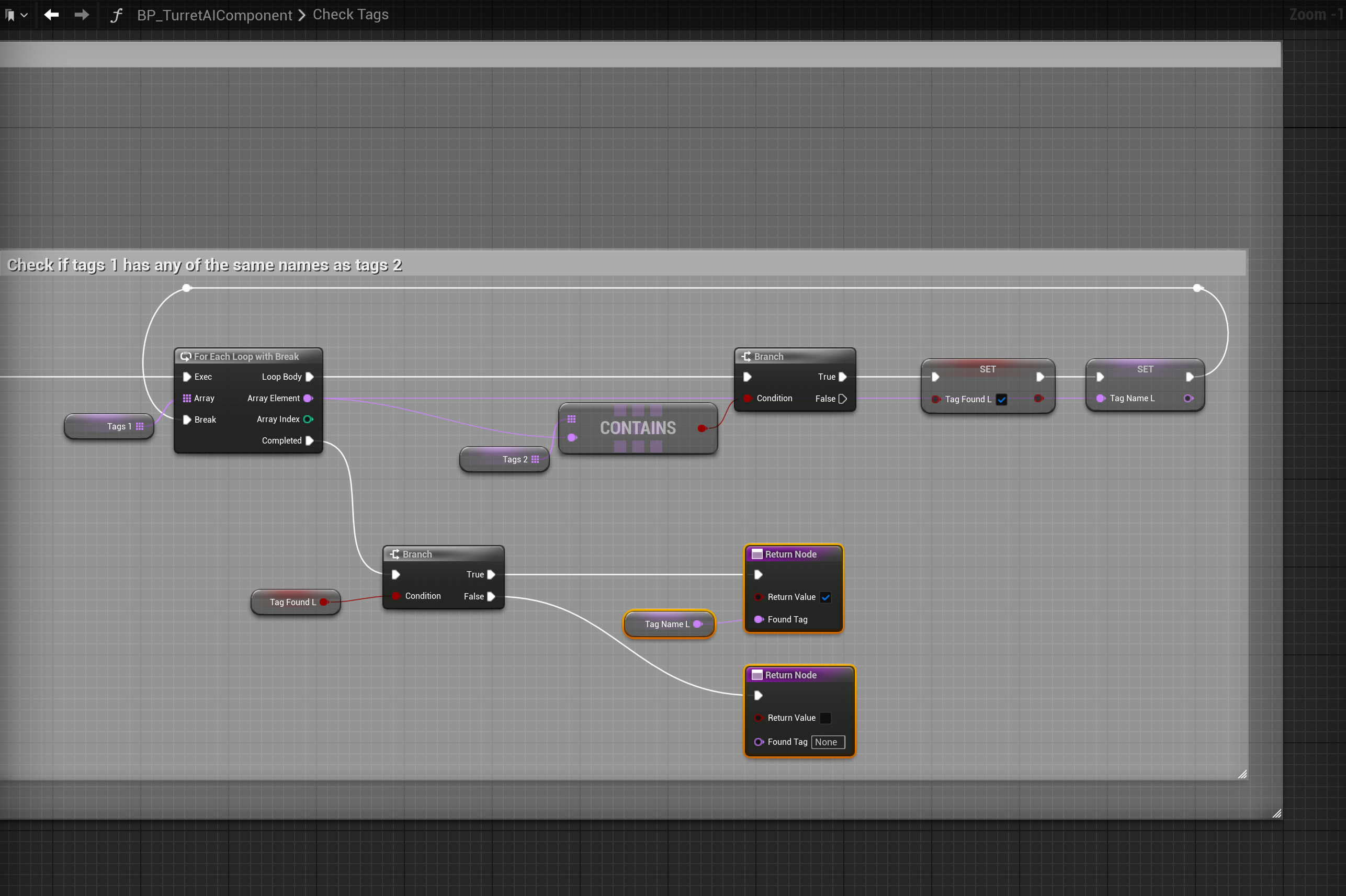 Smart AI – Fixed Turret Alerting AI Without Tags Go to the BP_TurretAIComponent then open the CheckTags function and copy the highlighted nodes in the image below.