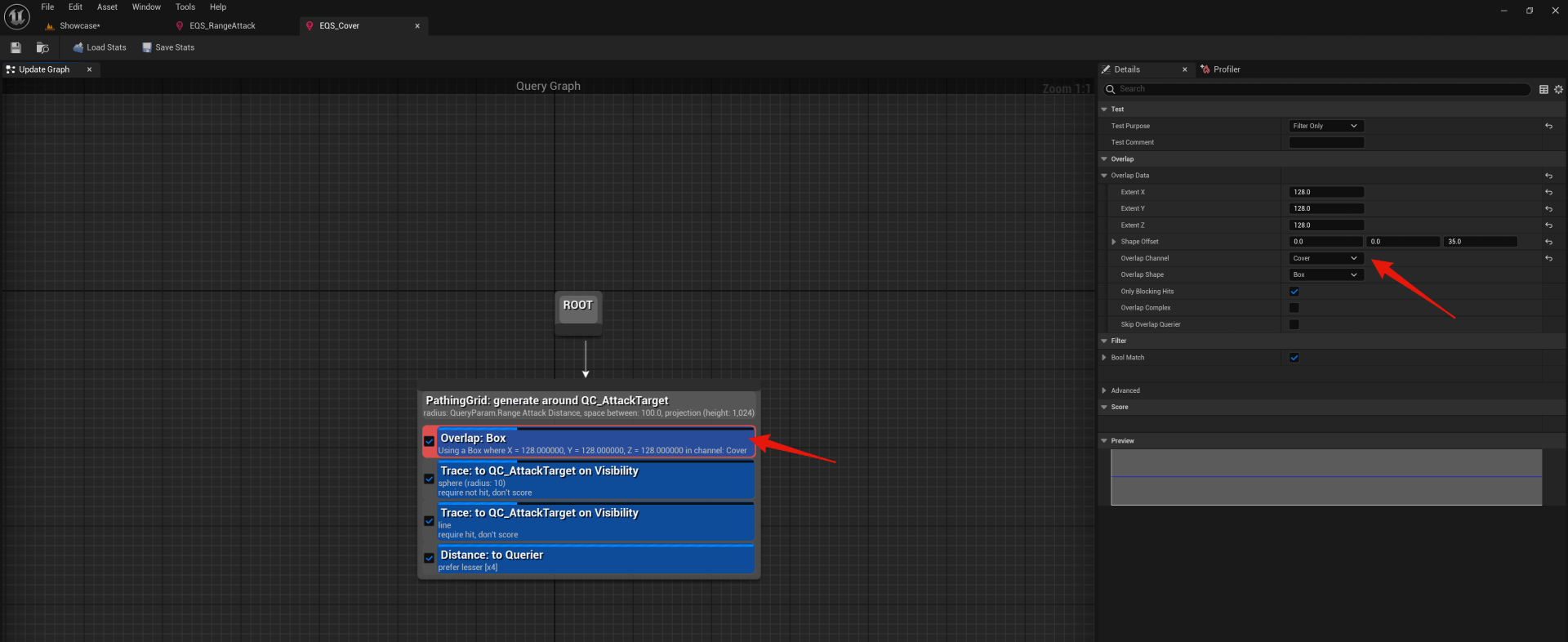 Next open the EQS_Cover blueprint and select the Overlap: Box node, then in the Details set the Overlap Channel to Cover like the image below.
