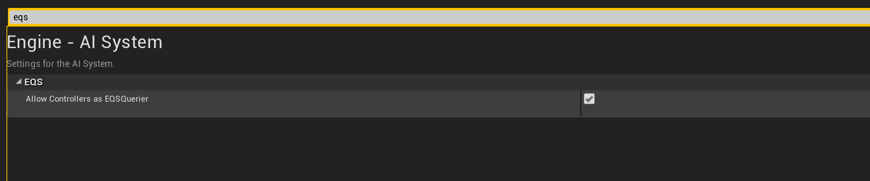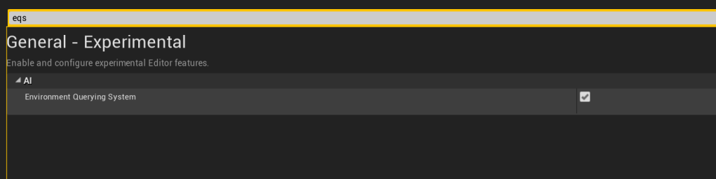 Smart AI project and editor settings Go to the Project Settings and search for EQS and enable the setting show below. Next go to the Editor Settings and search for EQS and enable the setting shown below. After enable it restart the project.