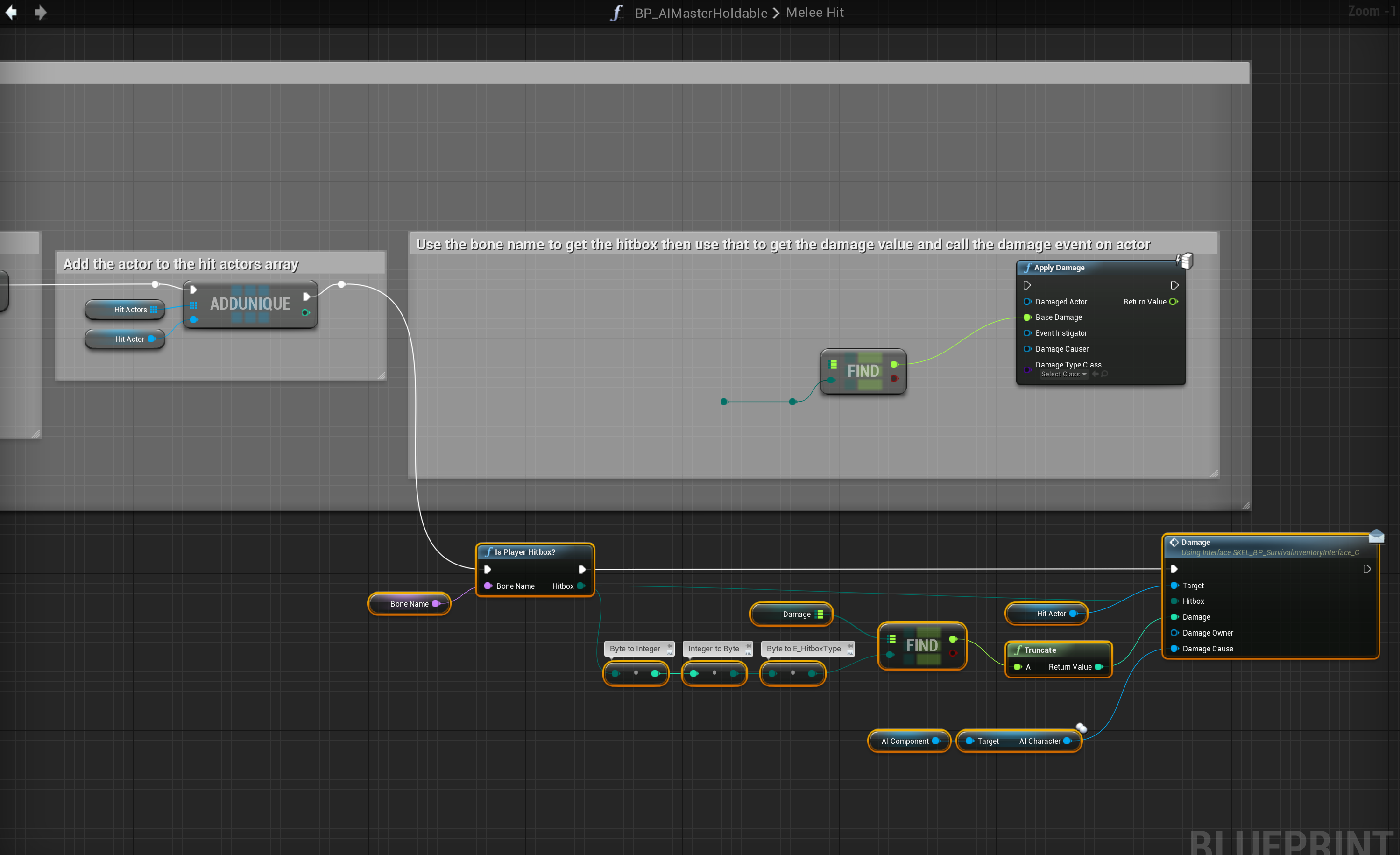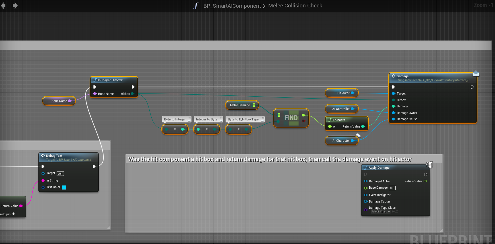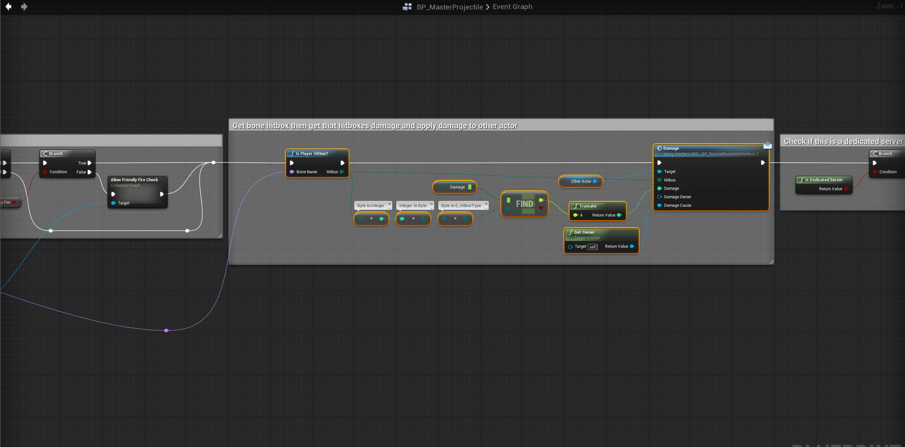Next go copy the images below, the locations are at the tops of the images. You will be replacing the Apply Damage nodes with the Damage node and the Is Hitbox node with the Is Player Hitbox? node like the images show make sure you copy the images exactly and make sure you check the names of the node you are using to be sure they are the same as the images. You can delete the Apply Damage node and the old code that is no longer being used if you like.