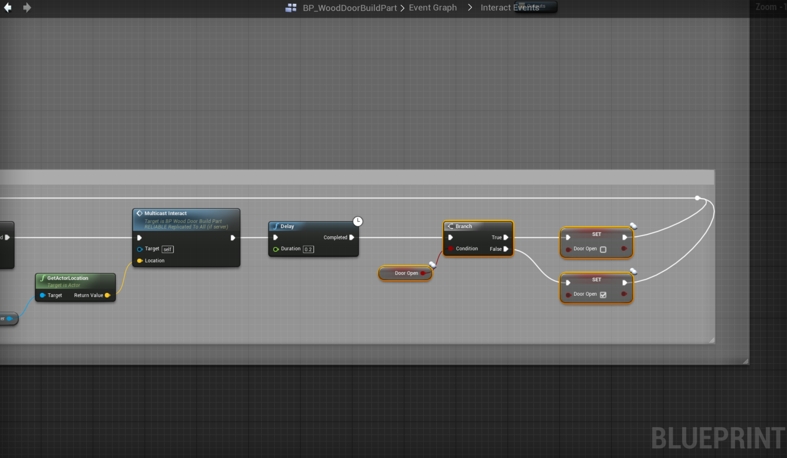 Create new bool variable called Door Open, set it to replicate. Set it to false.