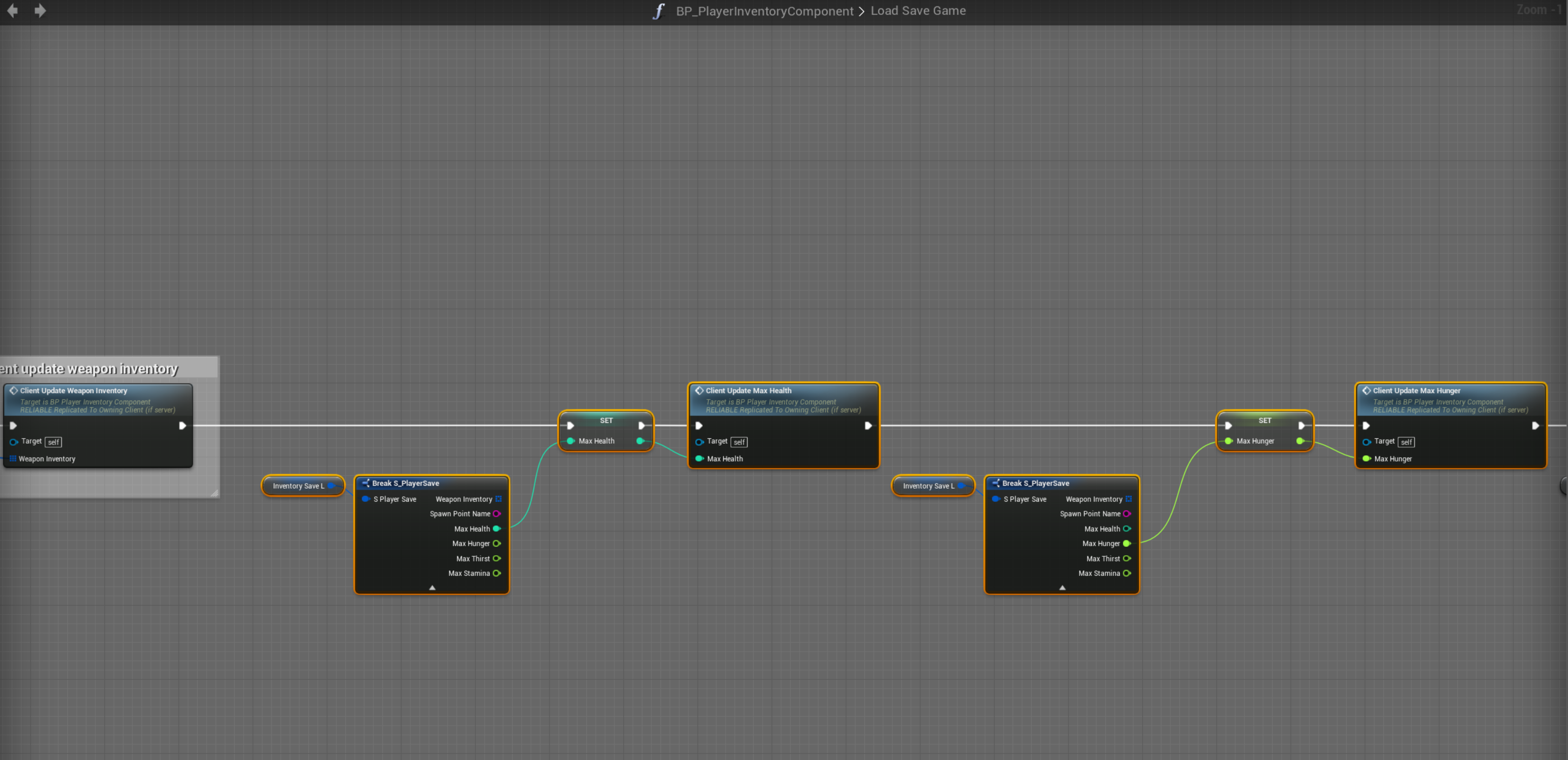 Next add the nodes shown below to the load save game after the Client Update Weapon Inventory node.