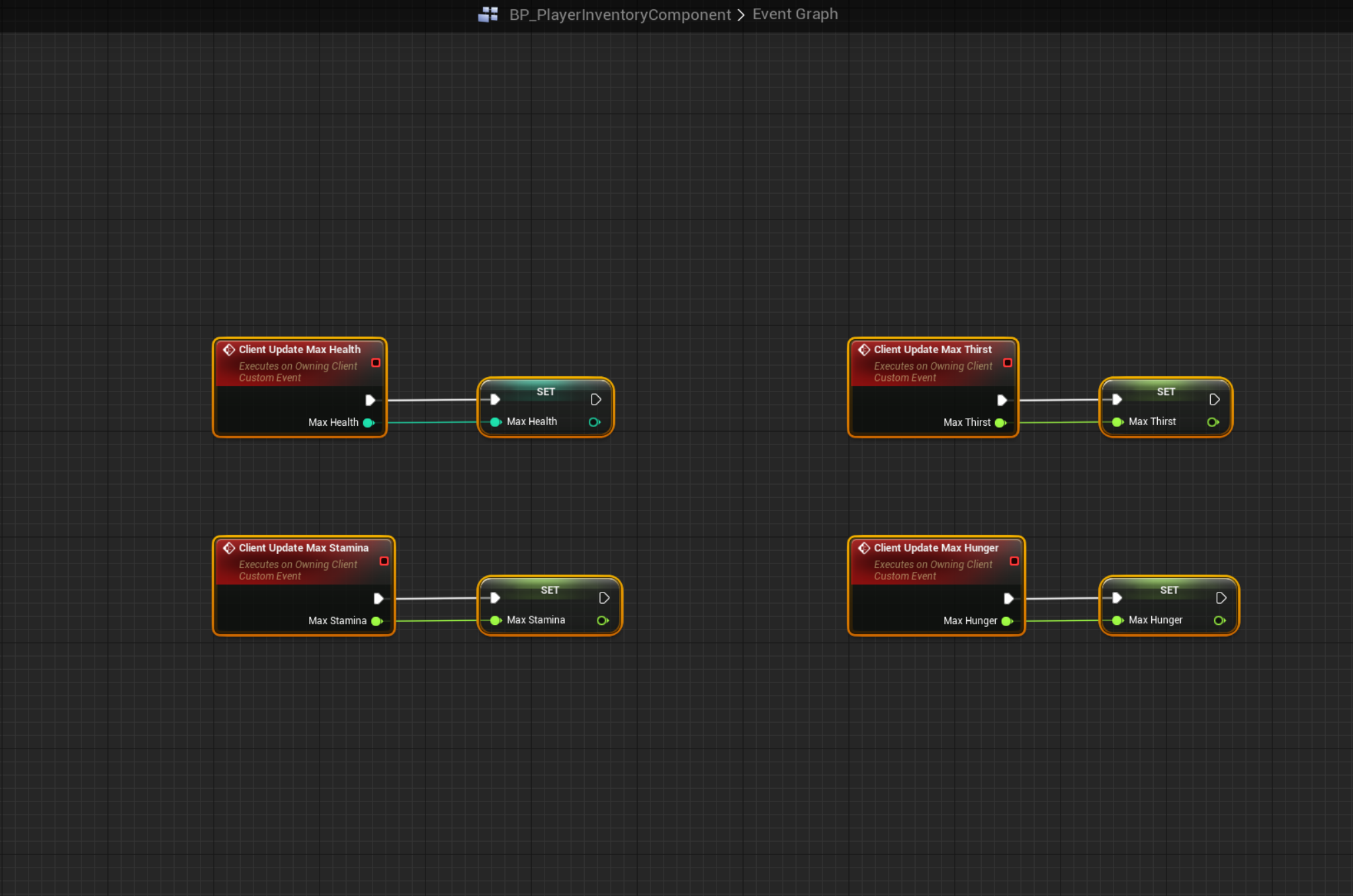 Create the Events shown below and set them to Run on owning client with reliable ticked. Then have there outputs set the max stats.