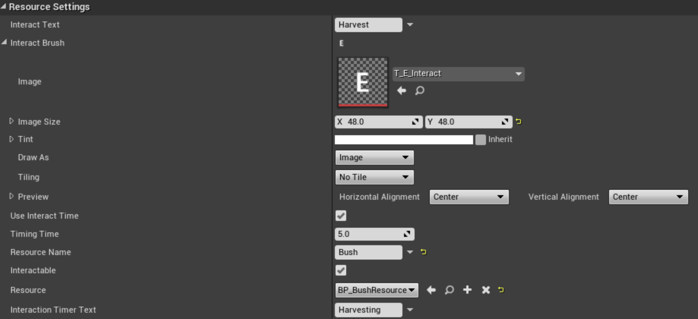 Set the BP_StickResourceFoliageComponent details in the class defaults