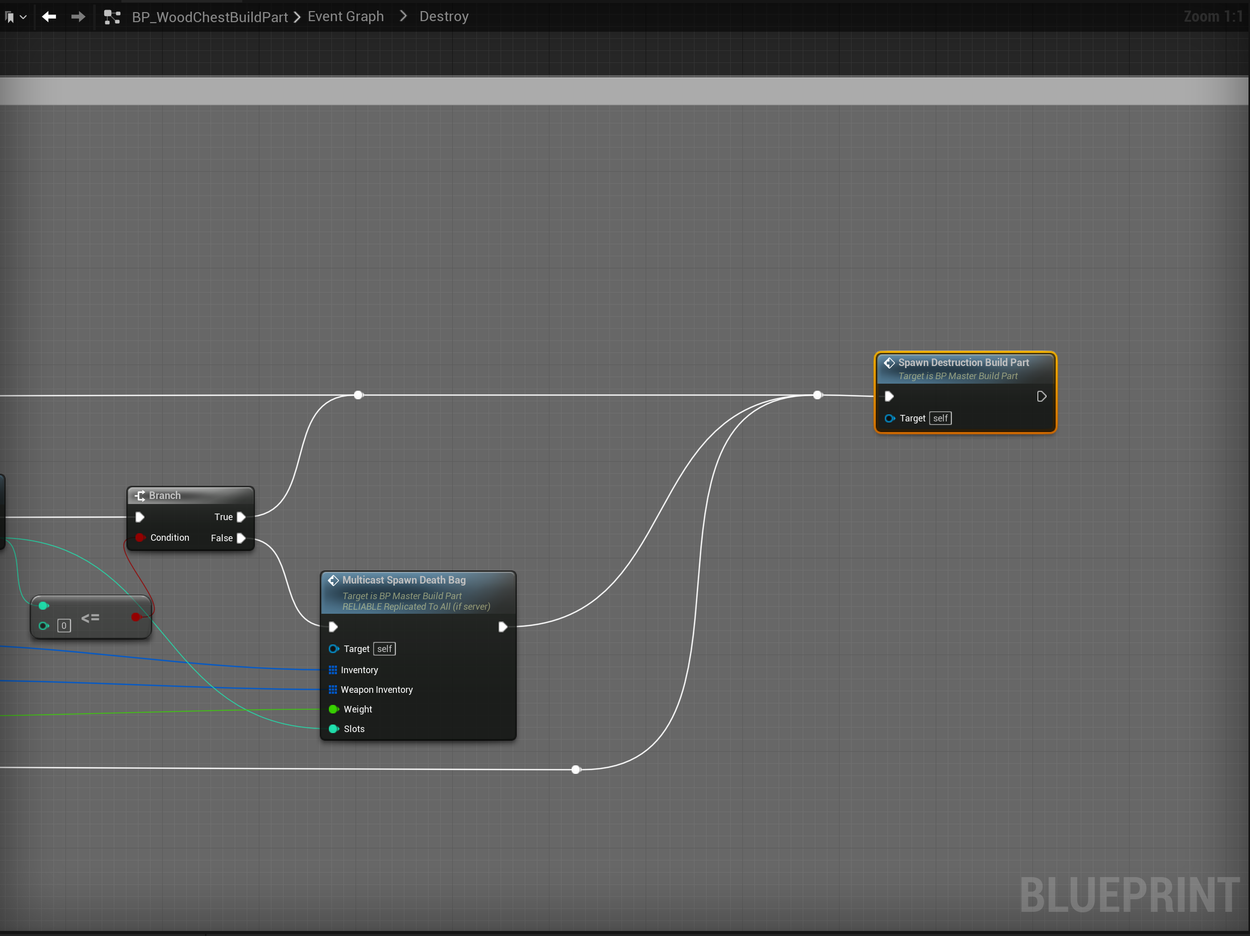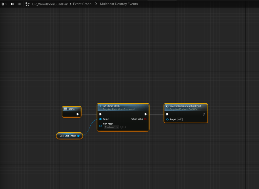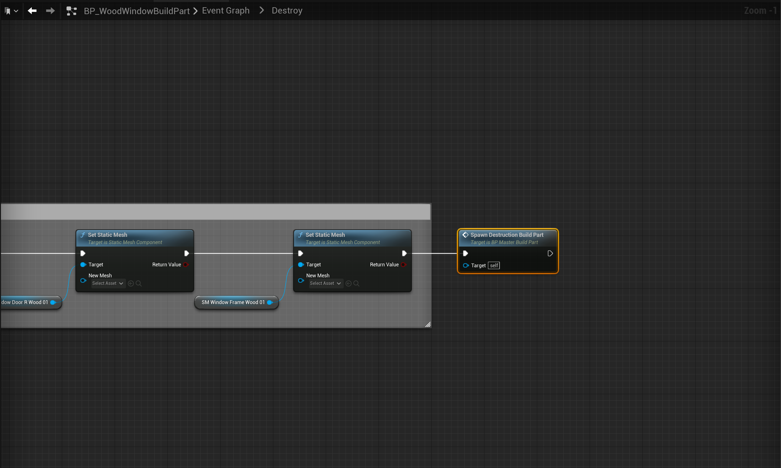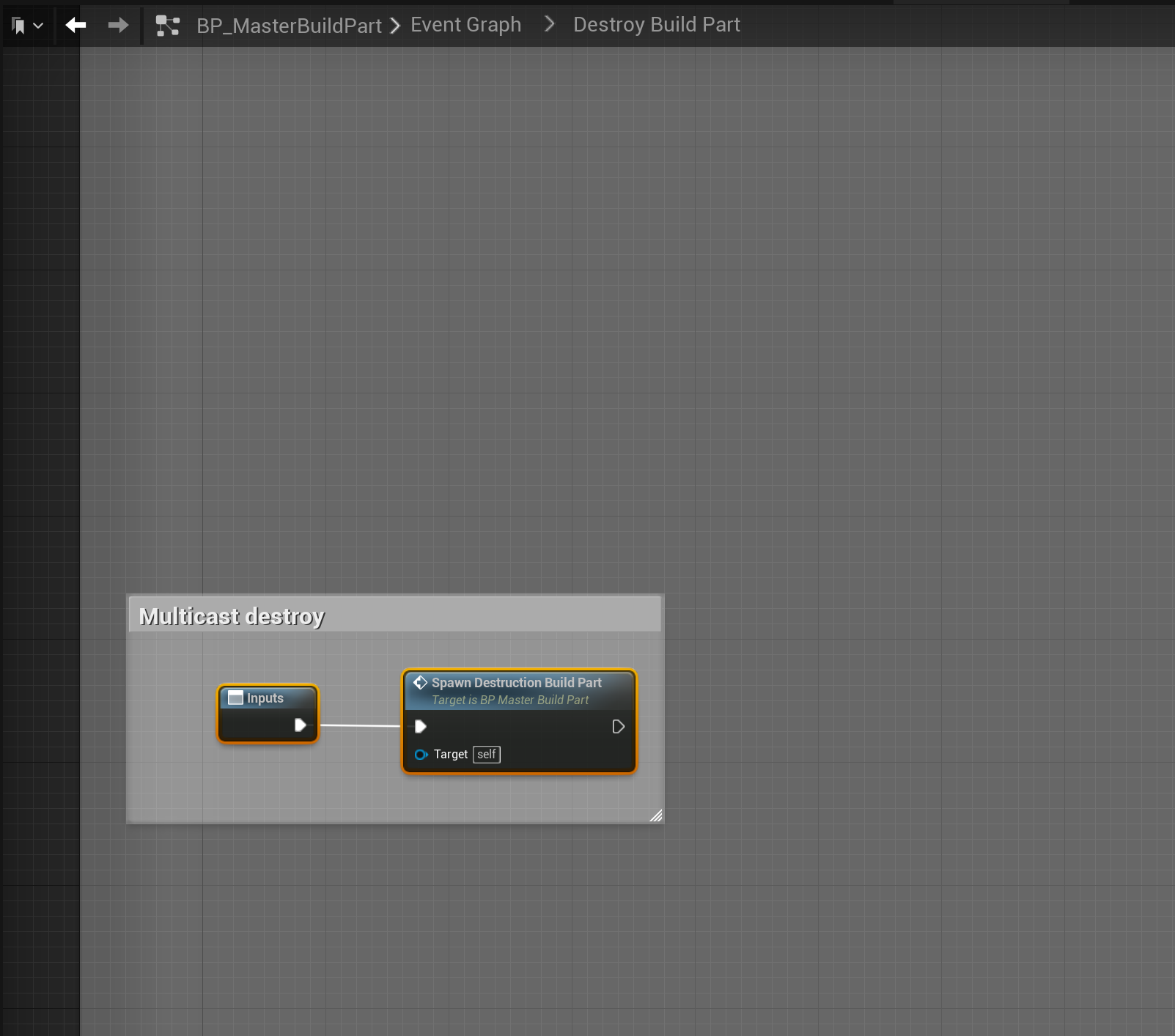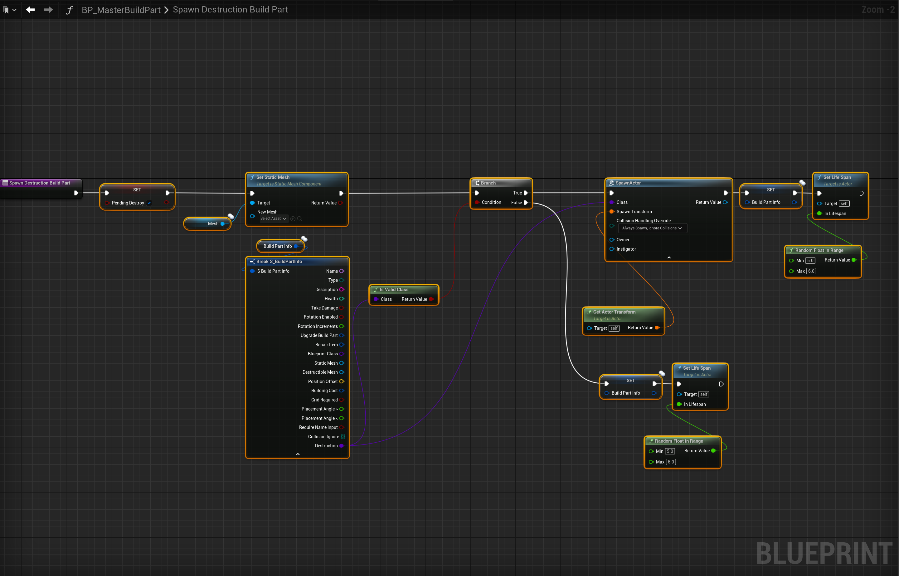 Next go to the BP_MasterBuildPart and create a new function called SpawnDestructionBuildPart then copy the image below.