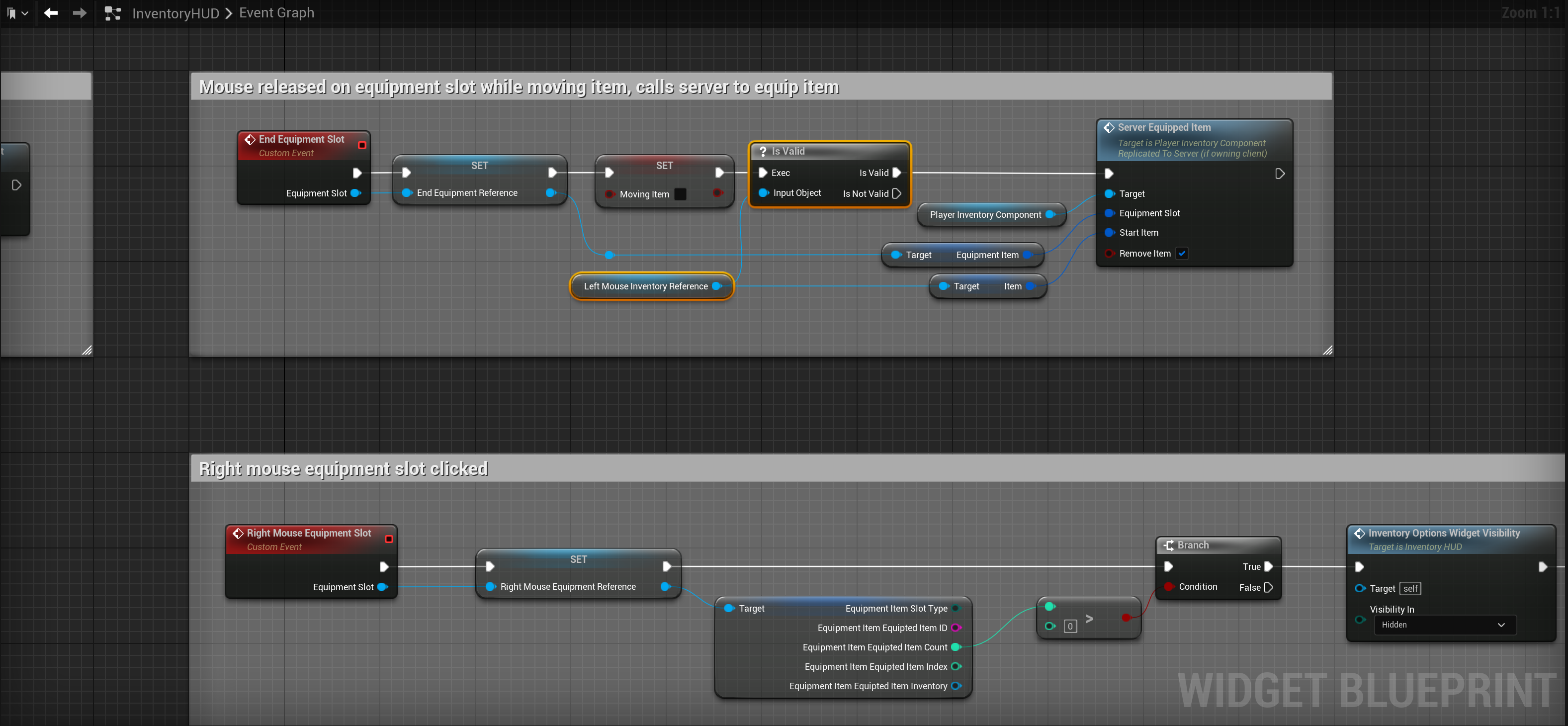 Survival Inventory – Fixed error when clicking empty equipment slot Add the highlighted nodes shown in the image below, location at the top of the image.