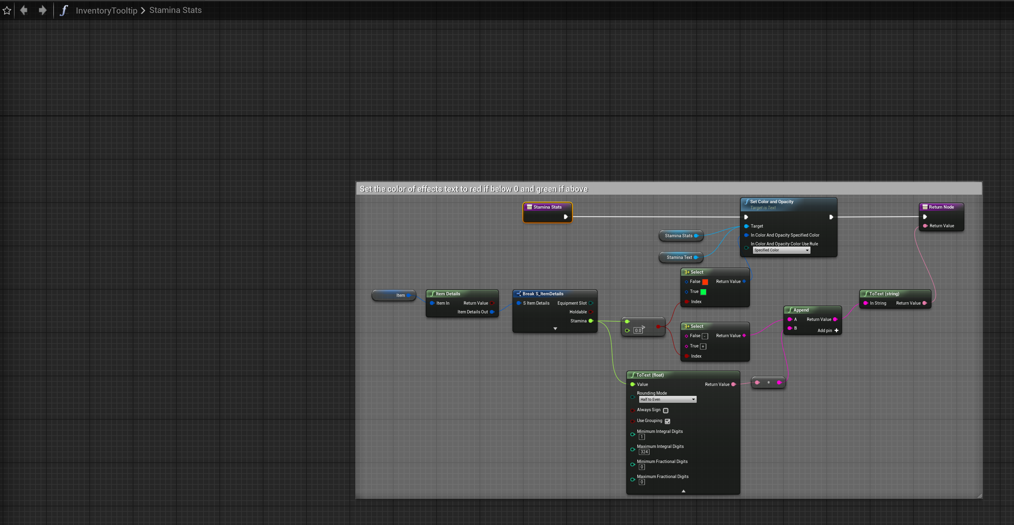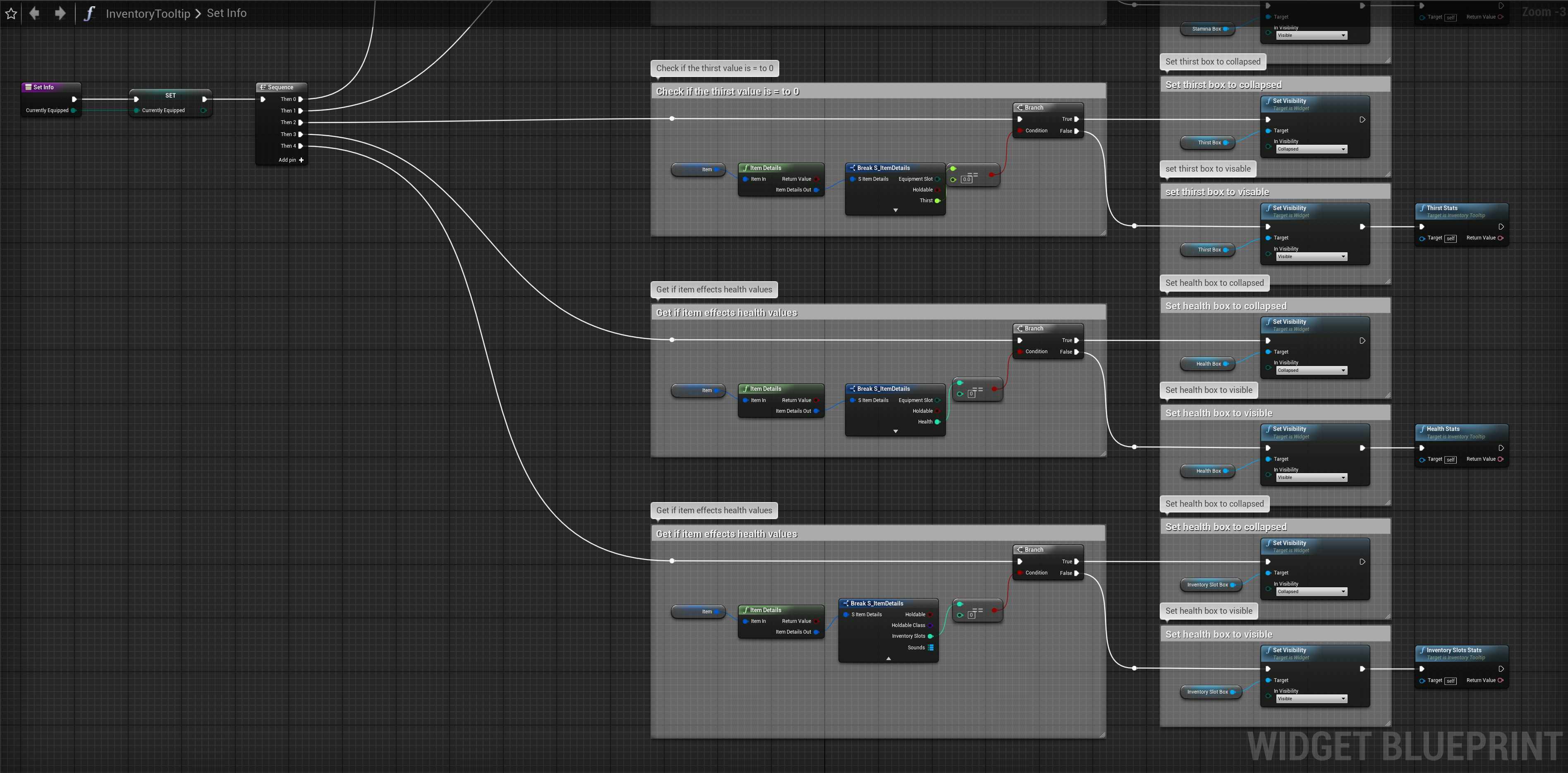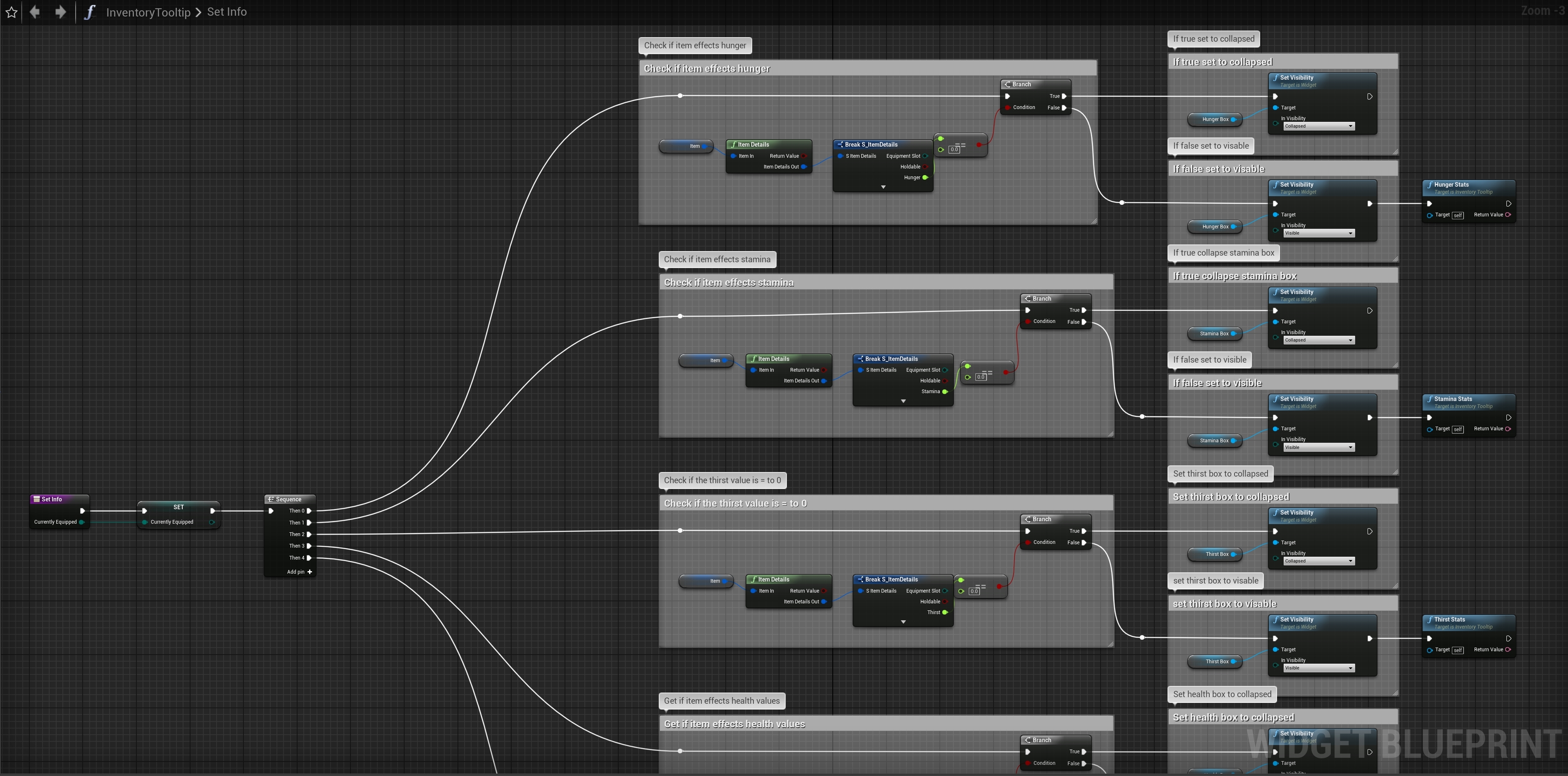 Go to the InventoryTooltip then go though the functions shown in the images below and make yours look the same. You may want to highlight and cut the nodes that are being removed from these functions and paste them into the Set Info function for use later in this guide.